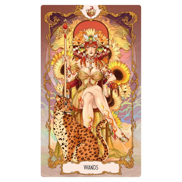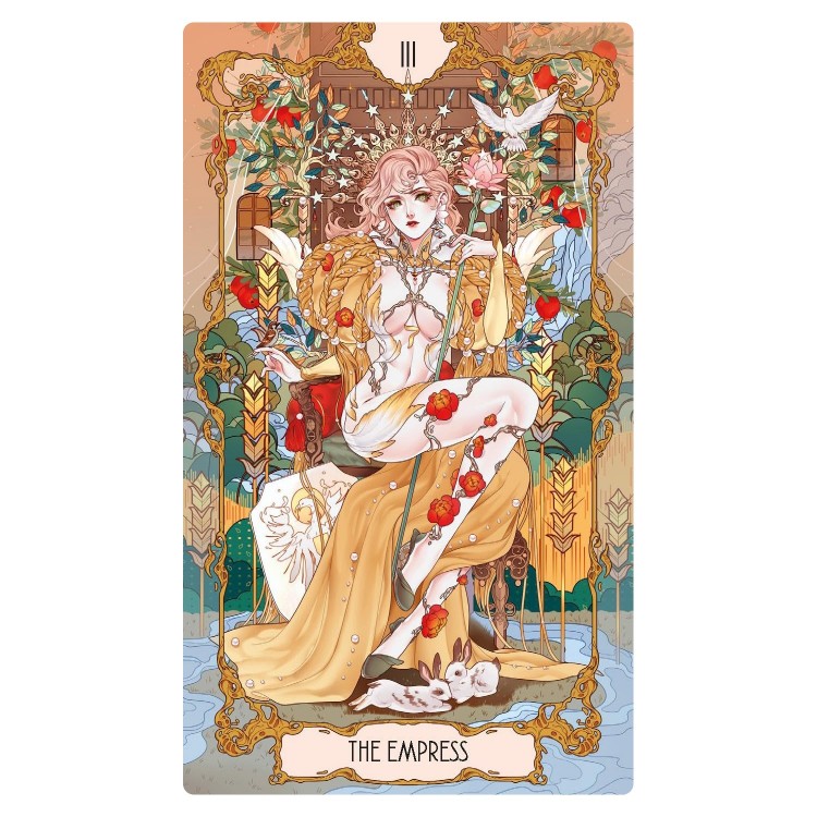 Sudėtingi ornamentai, ryški spalvų paletė ir anime stiliaus piešiniai paverčia šią Taro kaladę išskirtiniu vizualinio grožio ir ezoterinio turinio deriniu.