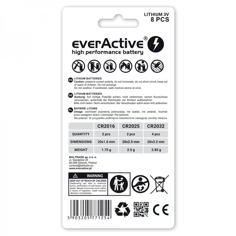 • Prekės kodas: (8 vnt.) EVERACTIVE 8BL SET CR2016-2025-2032