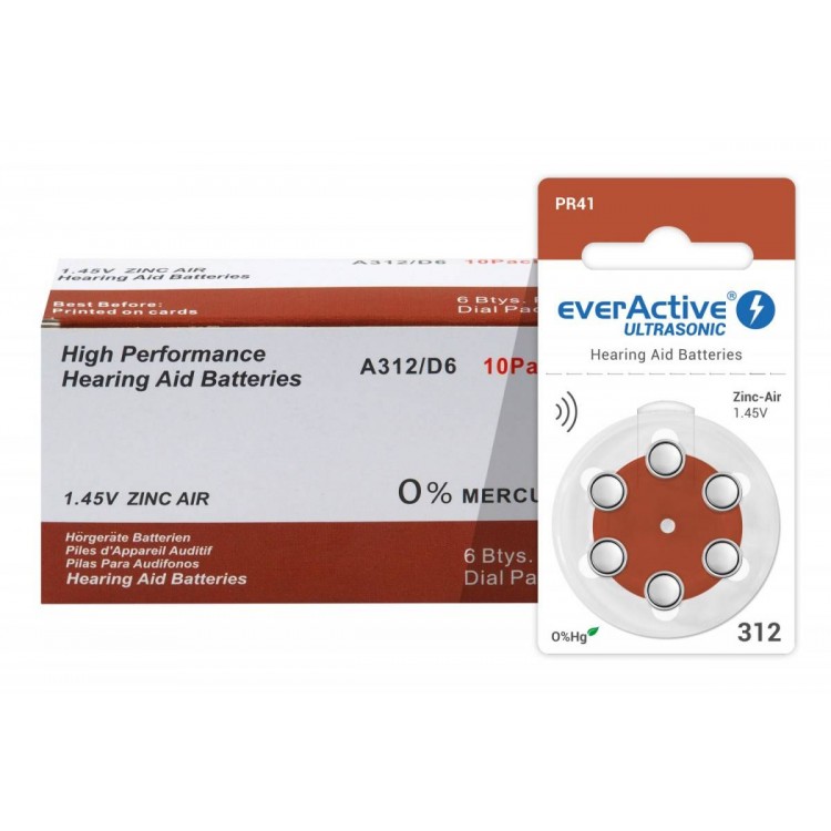 Everactive Ultrasonic 312 PR41 6BL klausos baterijos 60 vnt.