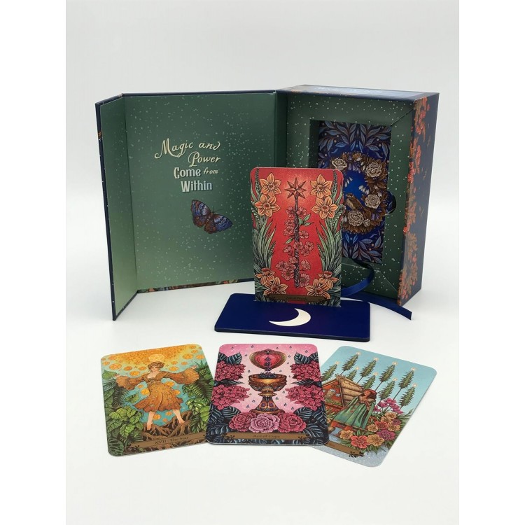 Sluoksniuoti reikšmingomis, gamta grindžiamomis iliustracijomis, didieji arkanai signalizuoja, kad kitas pasaulis yra arti, o mažieji arkanai atitinka keturis metų laikus. Lazdos įkūnija pavasario energijas, taurės simbolizuoja vasarą, kardai simbolizuoja rudenį, o pentakliai vaizduoja žiemą. Įtraukta 78 kortos su matiniu paviršiumi; 264 puslapių spalvotas vadovas; ir skaitymo altorius.