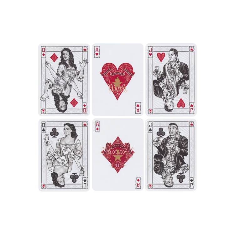 Karūnos įsakymu šios žaidimo kortos yra oficialiai leidžiamos naudoti visose kolonijose. Šiose žaidimo kortose gausu ikonografijos ir nuorodų į populiarųjį Brodvėjaus šou. Ar galite pastebėti visas paslėptas nuorodas?