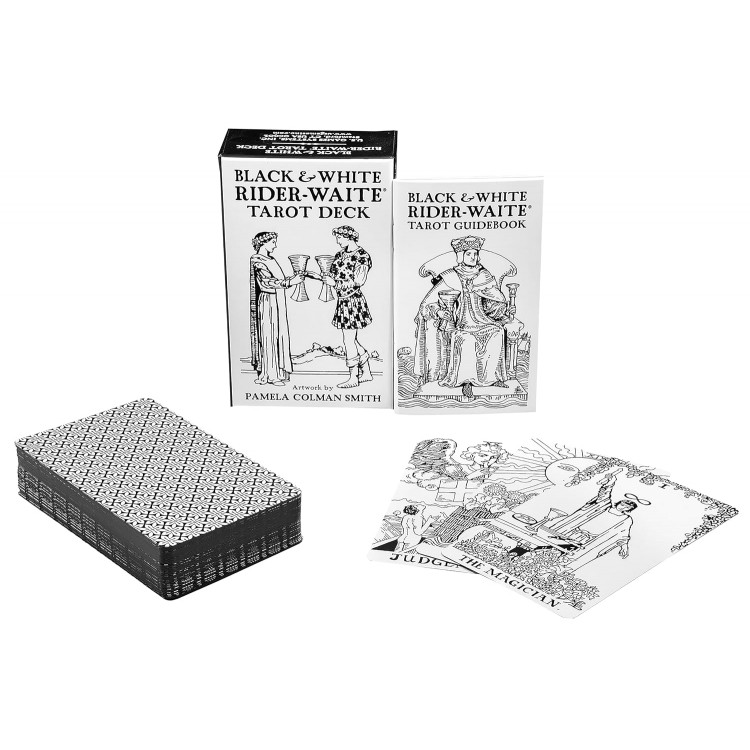 „Black & White Rider-Waite® Tarot“ pasižymi linijiniais piešiniais ir rankomis pieštais pavadinimais, kuriuos 1909 m. sukūrė Pamela Colman Smith. 78 kortelių be apvado, lino apdaila turi specialius juoda folija paauksuotus kraštus, o kartu su juo yra 54 puslapių vadovas su vertikaliomis ir atvirkštinėmis reikšmėmis bei idėjomis taro išdėstymui.