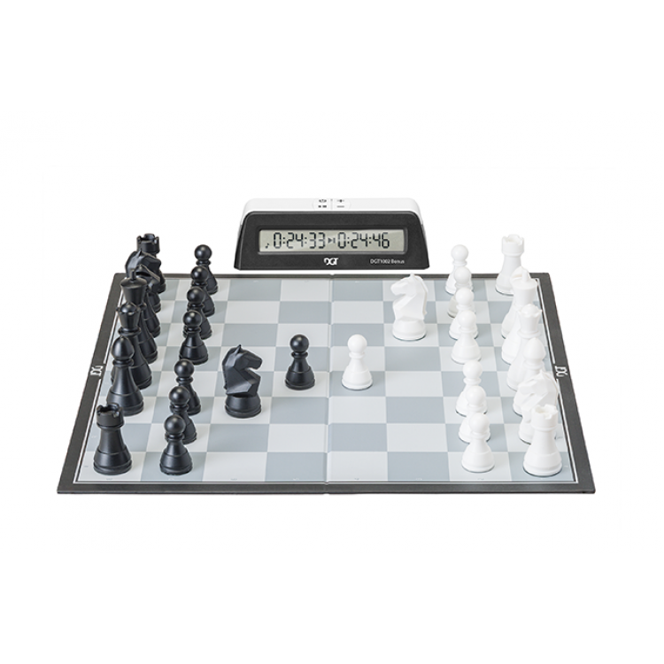 Pakelkite savo kūrybinį mąstymą su šiuo kruopščiai sukomplektuotu šachmatų rinkiniu. Jis kviečia du žaidėjus susijungti, kurti strategijas ir mėgautis įtraukiančiu šachmatų žaidimu. Šio rinkinio išskirtinumas – DGT1002 Bonus laikrodis, suteikiantis papildomą vertę ir funkcionalumą. Figūrėlės sukurtos pagal DGT registruotą Modern Staunton dizainą, yra mažo dydžio, todėl puikiai tinka ir vaikams. Aukštos kokybės medžiagos – tvirtas kartonas ir patvarus plastikas – garantuoja ilgaamžiškumą. Kompaktiška dėžutė patogi tiek transportavimui, tiek laikymui. Rinkinyje taip pat yra dvi papildomos valdovės.