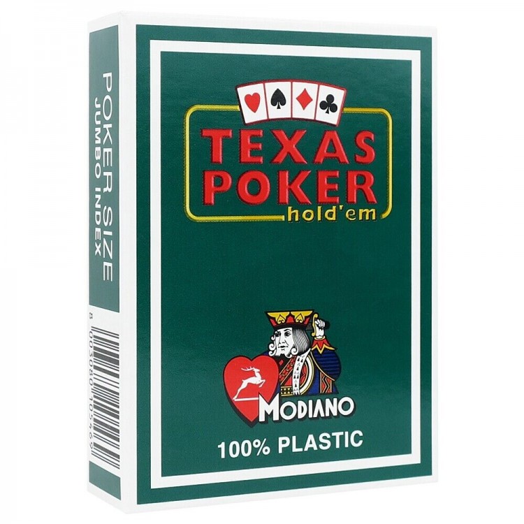 Šis Modiano kortos yra pagamintos iš 100% plastiko. 100 % plastikinės kortos paprastai yra 20 kartų patvaresnės nei plastiku dengtos kortos. Šios kortos taip pat yra atsparios vandeniui, pažeidimams. Texas Poker yra Jumbo indekso kortos, kurios idealiai tinka bet kokiam pokerio žaidimui ir ne tik.