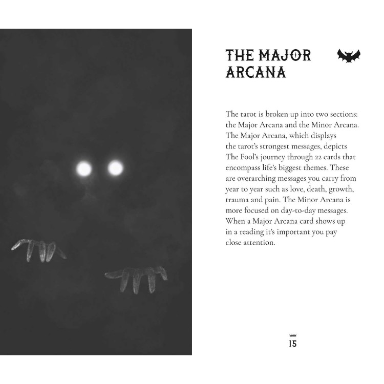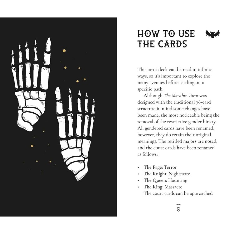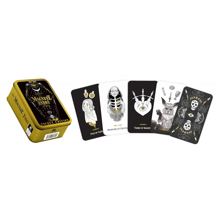 Ženk į tamsą ir išlaisvink savo baimę... Šis gražus, linksmas taro pateikiamas specialioje metalinėje kišeninėje versijoje. „Macabre Tarot“ kviečia tave nusisukti nuo šviesos ir tyrinėti savo pačios šešėlį. Laikydamasis tradicinės taro struktūros, jis žvelgia į tamsesnę taro pusę, ragindamas tave priimti visas baugias dalykas, tykančias tamsoje. Įspėjimas: šis kortų rinkinys nėra skirtas lengvabūdiškiems ar silpnos dvasios žmonėms! Įtraukia 78 kortas ir vadovą.