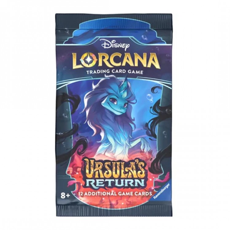 Magiškoje Lorcanos karalystėje prasidėjo galinga audra! Bauginanti jūros ragana Ursula, neseniai išlaisvinta iš Didžiojo Apšvietimo Šaltinio, dabar ieško galios. Ar jos strategijos bus sėkmingos, ar jas sutriuškins Lorcanos herojai? „Ursulos sugrįžimo“ papildymo paketas suteikia jums galimybę išbandyti naujas „Disney Lorcana TCG“ kortas. Kiekviename pakete yra 12 kortų, todėl jis puikiai tinka jūsų žaidimo strategijai plėsti ir tobulinti. Kartu su pradedančiųjų kortų kaladės kortomis dabar galite integruoti naujus gebėjimus ir personažus, kad sukurtumėte geriausią kortų kaladę.