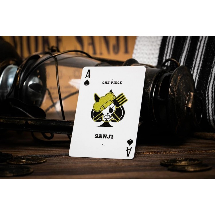 Sanji, dar žinomas kaip „Juodoji koja Sanji“, yra Šiaudų skrybėlės piratų virėjas, garsėjantis savo griausmingais kojų smūgiais ir didžiąja gyvenimo svajone atrasti paslaptingą „All Blue“. Šioje kortų kaladėje atgyja jo charizma ir legendinis charakteris – tikra dovana kiekvienam „One Piece“ gerbėjui.